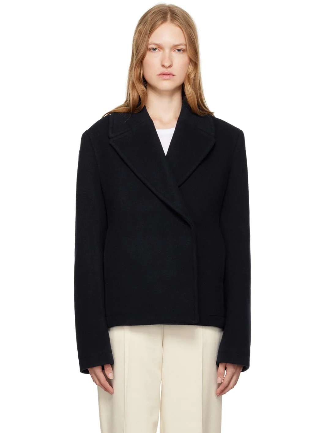 Wool-blend melton jacket. · Notched lapel · Double-breasted button closure · Welt pockets · Strap at back · Welt pocket at interior · Full viscose twill lining Supplier color: Navy