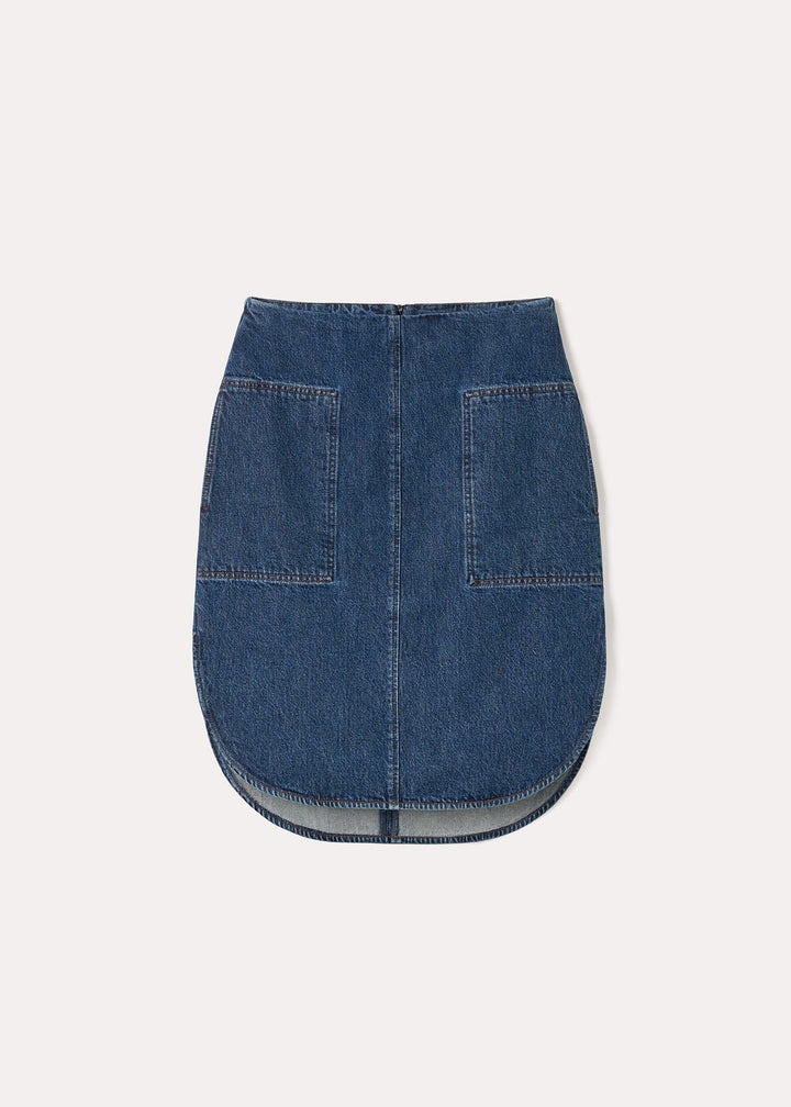 Curved-hem denim skirt dark blue
