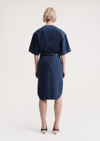 TOTEME skirt ideal for easy summer looks. It's made in Italy from organic-cotton denim with a high waist and a curved hem with side slits for ease of movement, then fitted with slip pockets and a back zipper. Team it with a blouse or a top depending on the occasion. Details and fit - Dark blue - Side slip pockets - Curved hem, side slits - Concealed back zipper - 100% Organic cotton - 30°C Machine wash - Style number 233-2054-741 - The model is 176cm/5'9'' tall and wears a size 34 - True to size, designed to sit at the hips