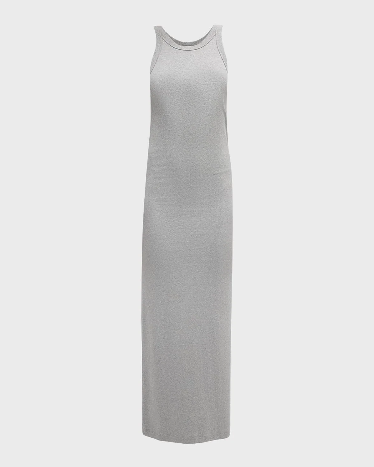 Toteme tank maxi dress in a curved ribbed knit finish Crew neckline Sleeveless Full length Column silhouette Organic cotton/elastane Made in Portugal
