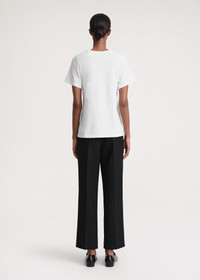 Signature TOTEME T-shirt made in Portugal from soft, light and fresh organic-cotton jersey. It’s designed for a relaxed slim fit with a round neck, curved armhole seams which add structure to the sleeves, and an in-tone monogram embroidery at the front. Team it with anything from relaxed denim to tailored trousers. Details & Fit - Off-white - Embroidered monogram - 100% Organic cotton - 30°C Machine wash - Style number 211-439-770 - True to size - The model is 177cm/510 tall and wears a size S