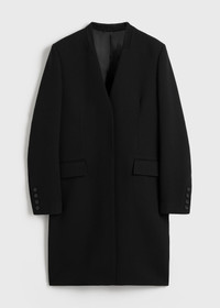 TOTEME coat constructed with generous back pleats that create extra volume for a sculptural effect. It is made from fluid suiting fabric and finished with a concealed button front and flap pockets. Style it with a tuxedo scarf for directional impact. Details & Fit - Black - Curved back, shoulder pleats - Concealed button placket, buttoned cuffs - Flap pockets, internal pocket - 60% viscose, 40% wool; lining: 100% viscose - Dry clean - Style number 251-WRO4312-FB0336 - The model is 179cm/5'10" tall and wears a size 36 - True to size, rounded silhouette