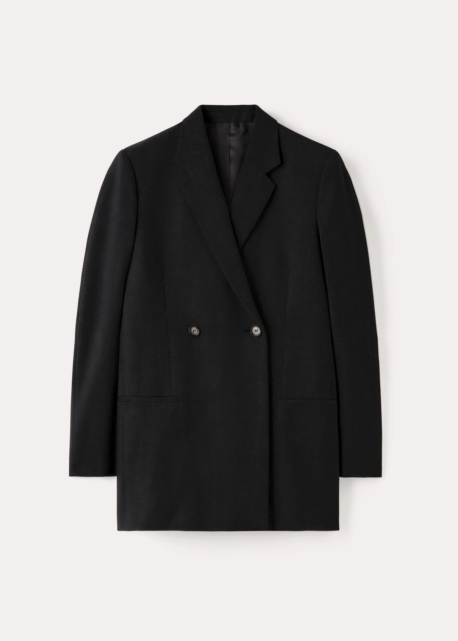 Oversized TOTEME blazer woven from certified wool yarns to a double-breasted silhouette with a wide back and well-defined, padded shoulders, then finished with welt pockets and a back vent. Leave it open to show glimpses of the satin lining inside. Details & Fit - Black - Button front - Welt pockets - Black satin lining - 100% Wool; lining: 100% viscose - Dry clean - Style number 223-115-235 - The model is 176cm/58 tall and wears a size 34 - Designed for an oversized fit. Take your usual size for the intended look or go down a size for a neater look
