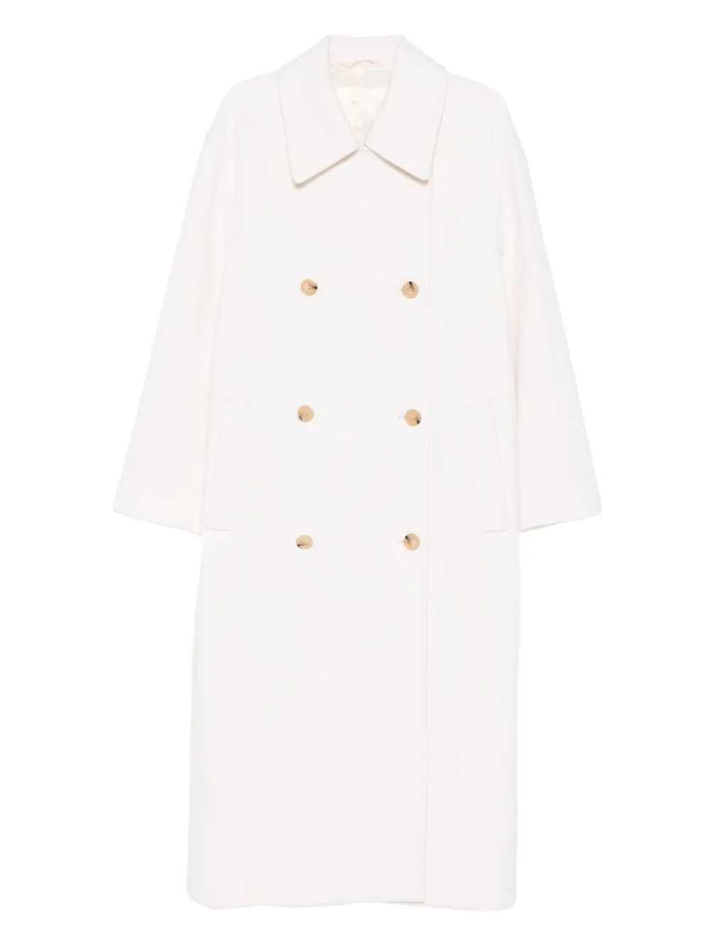 double-breasted wool coat Highlights - Off-white - Double-breasted - Notched lapels - Front flap pockets - Button fastening - Long sleeves Imported Composition Outer: Wool 70%, Polyamide 25%, Cashmere 5% SIZE & FIT Model measurements Height 5 ft 9 in(1.76 m) Bust/Chest 33.85 in(86 cm) Hips 35.43 in(90 cm) Waist 25.59 in(65 cm) Washing instructions Dry Clean Only