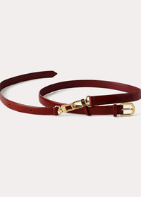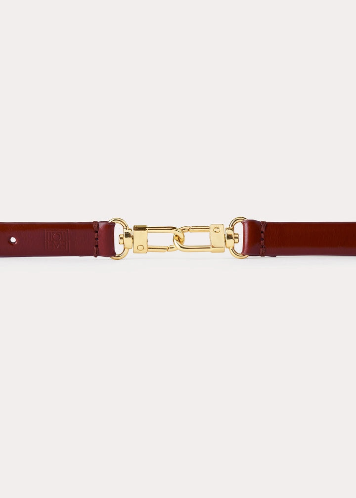 Slim belt accented with TOTEME's distinctive double clasp in gold-tone metal. It's crafted in Italy from responsibly sourced leather and comes in a single size that can be adjusted between 75cm and 95cm. Wear it at the waist over a dress or blazer. Details and fit - Cognac - 100% Cow leather - Care instructions and dustbag included - Width 1.5cm/0.6" - Length 1m/39.4" - Adjustable sizing - Style number 212-807-731