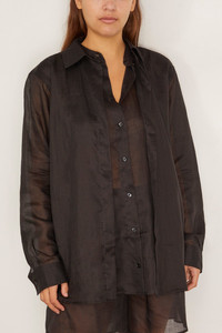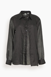 The Toteme Double Collar Shirt is a twist on a classic. This button down features their signature relaxed fit with a unique double stand and point collar in semi-sheer ramie. Wear yours with shorts and sandals. FIT DESCRIPTION MODEL MEASUREMENTS - Fits true to size, take your normal size - Button down shirt - Relaxed fit - Double collar: stand and point - Semi-sheer - 100% ramie - Emma is wearing a size 34/ 2 US - Bust: 32” - Waist: 25” - Hips: 34” - Height: 5’7”