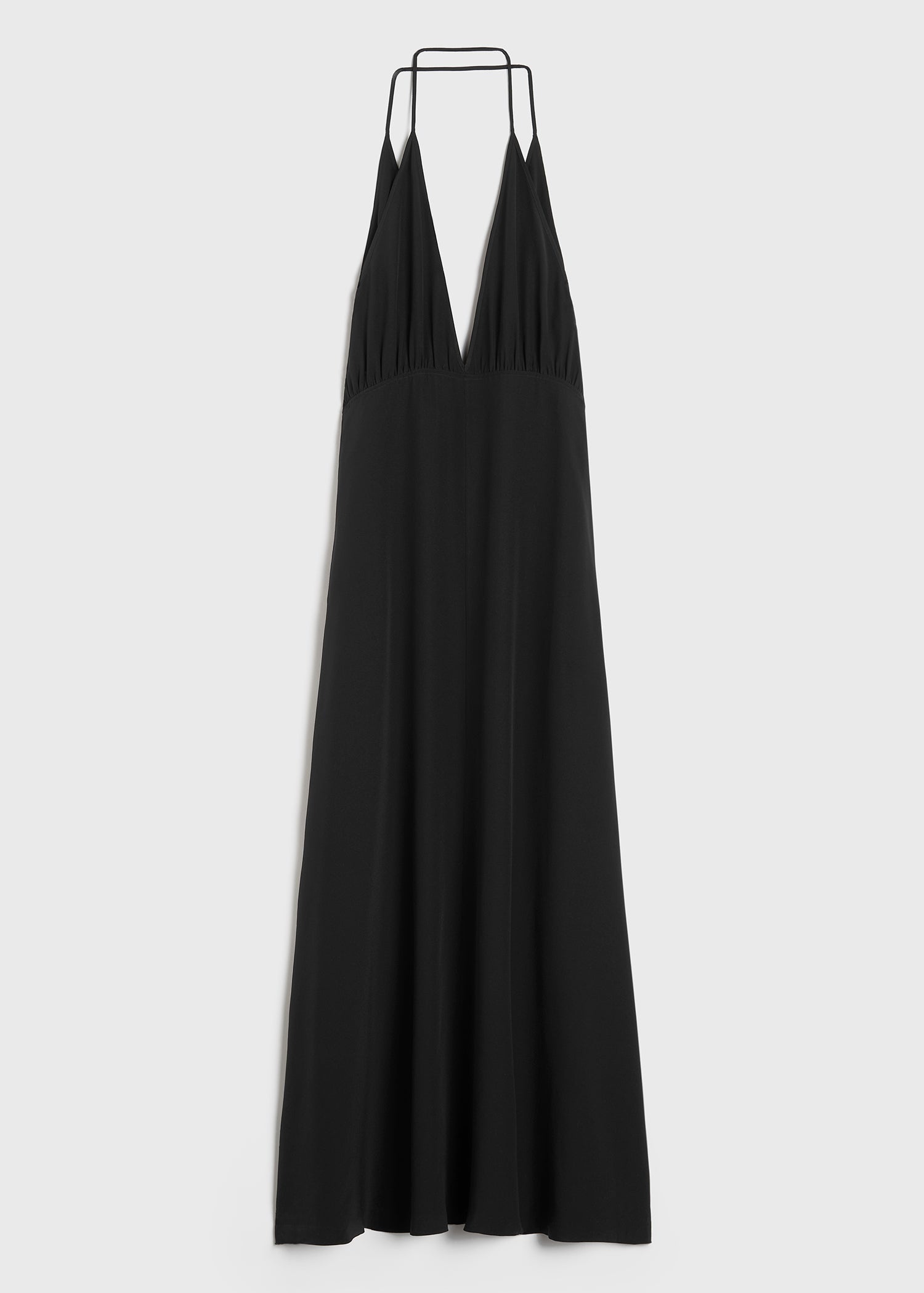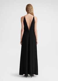 Long TOTEME dress made from delicate silk crepe de Chine for special occasions. It consists of two halterneck loops crossed over each other for a choker effect that's followed by plunging front and back necklines, side-seam pockets and a concealed back zipper. Add a pair of sandals for an unstudied edit. Details & Fit - Black - Side pockets - Concealed back zipper - Matching lining - 100% silk; lining: 100% viscose - Dry clean - Style number 242-WRD2197-FB0115 - The model is 177cm/59 tall and wears a size 36 - Regular fit, true to size