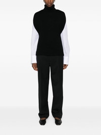 Wool vest [ SKU: 10194218924 ] The Wool vest by TOTEME is a luxurious addition to any wardrobe. This versatile piece features a refined turtleneck and stylish side slits, making it perfect for layering or wearing alone. Ideal for both casual outings and sophisticated events, it pairs beautifully with tailored trousers or a flowing skirt. Elevate your evening look by combining it with statement accessories for a chic ensemble. Crafted with sustainability in mind, this vest showcases a commitment to quality and responsible sourcing, ensuring you look good while making a positive impact. Composition Wool or fine animal hair->RWS Wool97.0 % Synthetic->Elastane1.0 % Synthetic->Polyamide2.0 % Reference 261WRT0573YA0008001