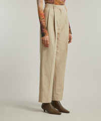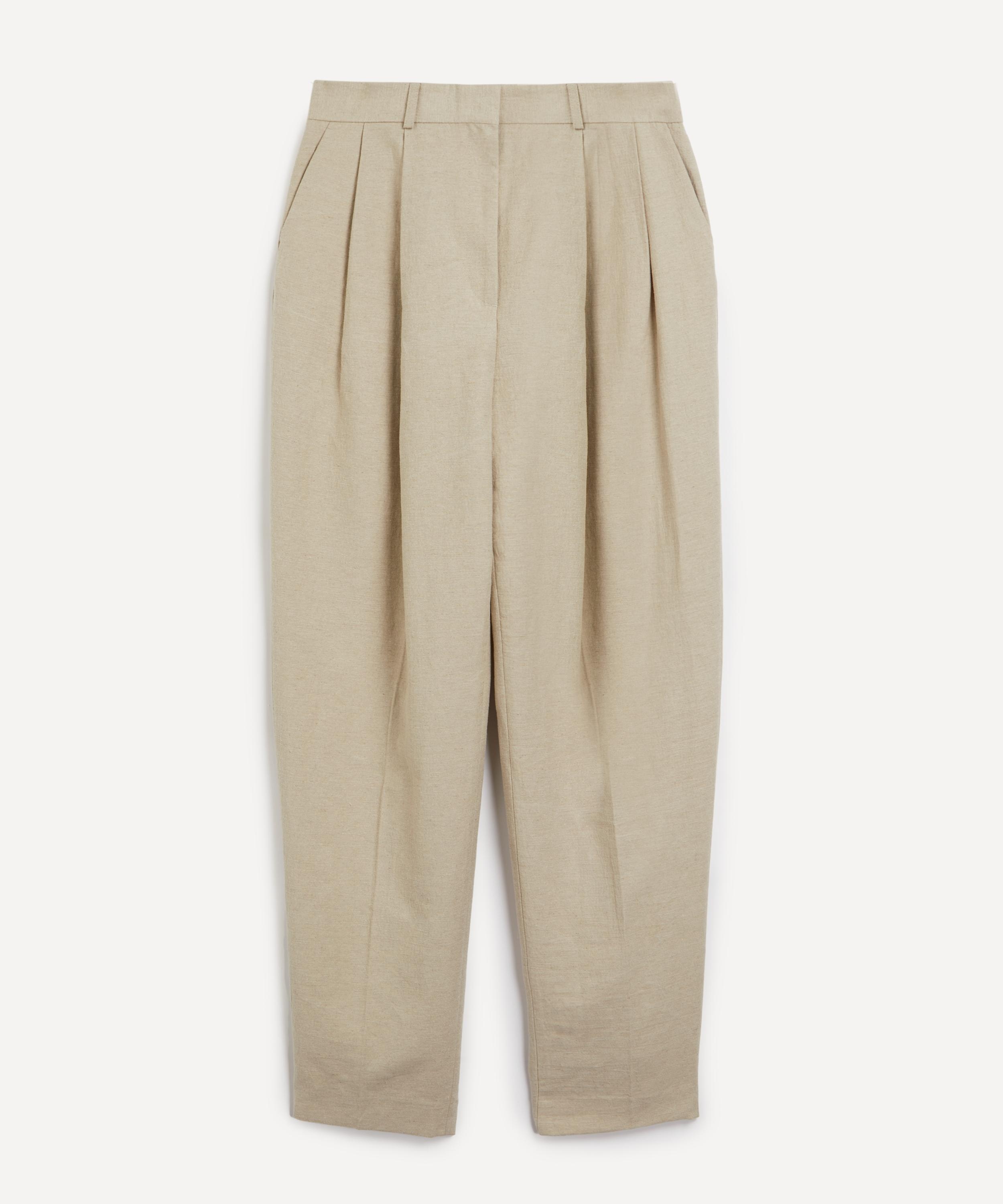 DETAILS Linen-blend suit trousers Regular fit Low-mid rise Straight legs Double pleats Belt loops Hook and zipper front Side slip pockets Rear welt pockets SIZE & FIT Model is 180cm/5'11"; Chest: 79cm; Waist: 61cm; Hips: 89cm and wears a size 8 COMPOSITION & CARE 85% Linen; 10% Cotton; 5% Polyamide Dry clean