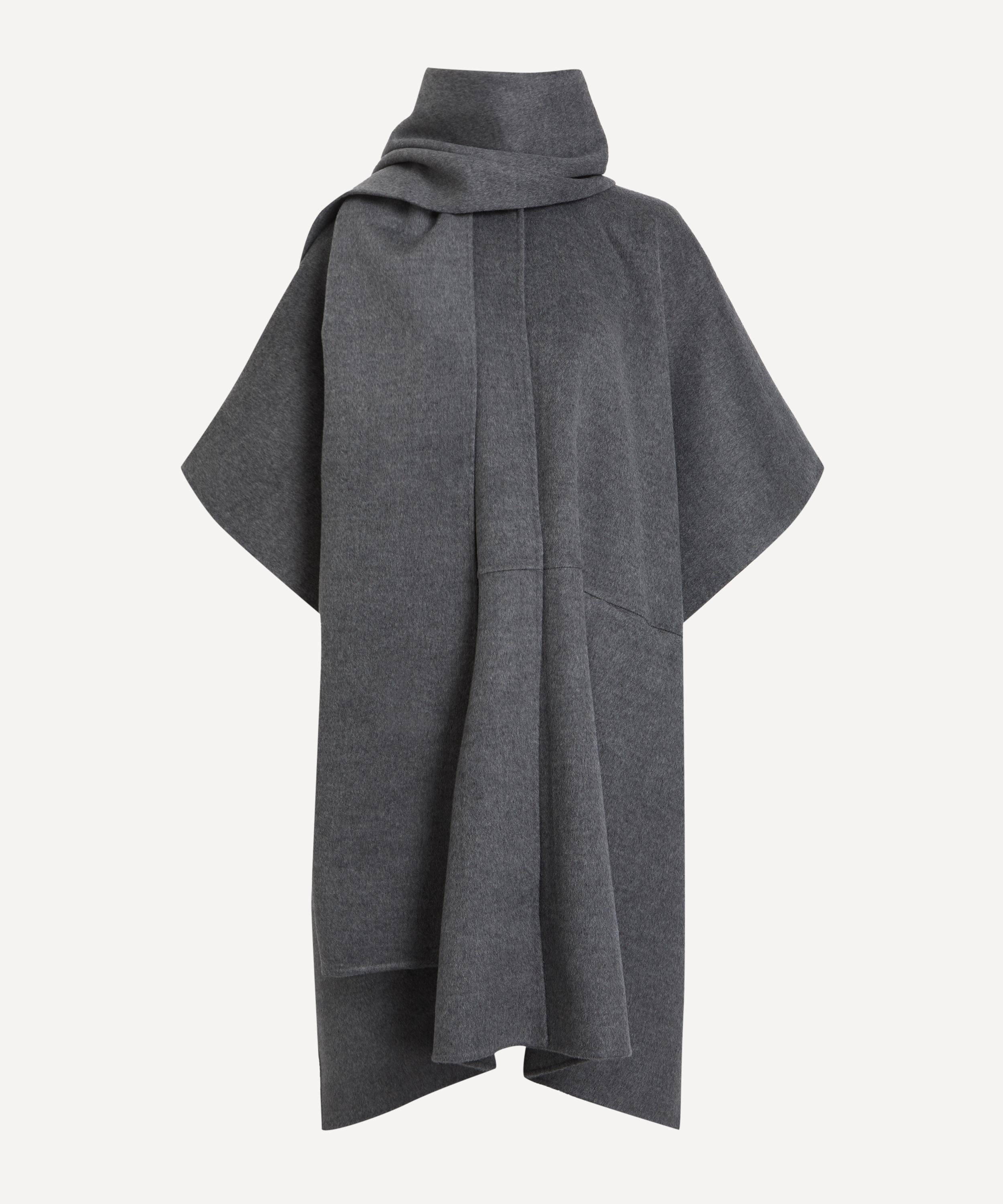 DETAILS Poncho-style coat Wool double fabric Relaxed silhouette Melange effect Detachable, matching scarf Side splits Sap button closure Long length Inseam pockets SIZE & FIT Model is 178.5cm/5'10" ; Chest: 77.5cm; Waist: 58.5cm; Hips: 86cm and wears a size XS-S COMPOSITION & CARE 100% Wool Dry clean