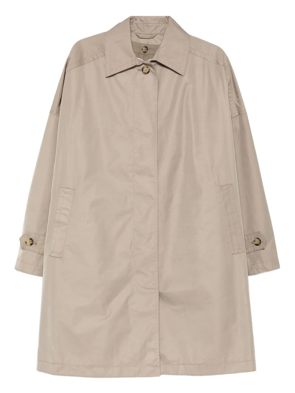 drop-shoulder trench coat Highlights - Beige - Concealed front button fastening - Point collar - Long sleeves - Side pockets - Buttoned cuffs Imported Composition Polyester 100% SIZE & FIT Model measurements Height 5 ft 10 in(1.77 m) Bust/Chest 32.28 in(82 cm) Hips 35.03 in(89 cm) Waist 25.19 in(64 cm) Washing instructions Read Manufacturer Guidelines