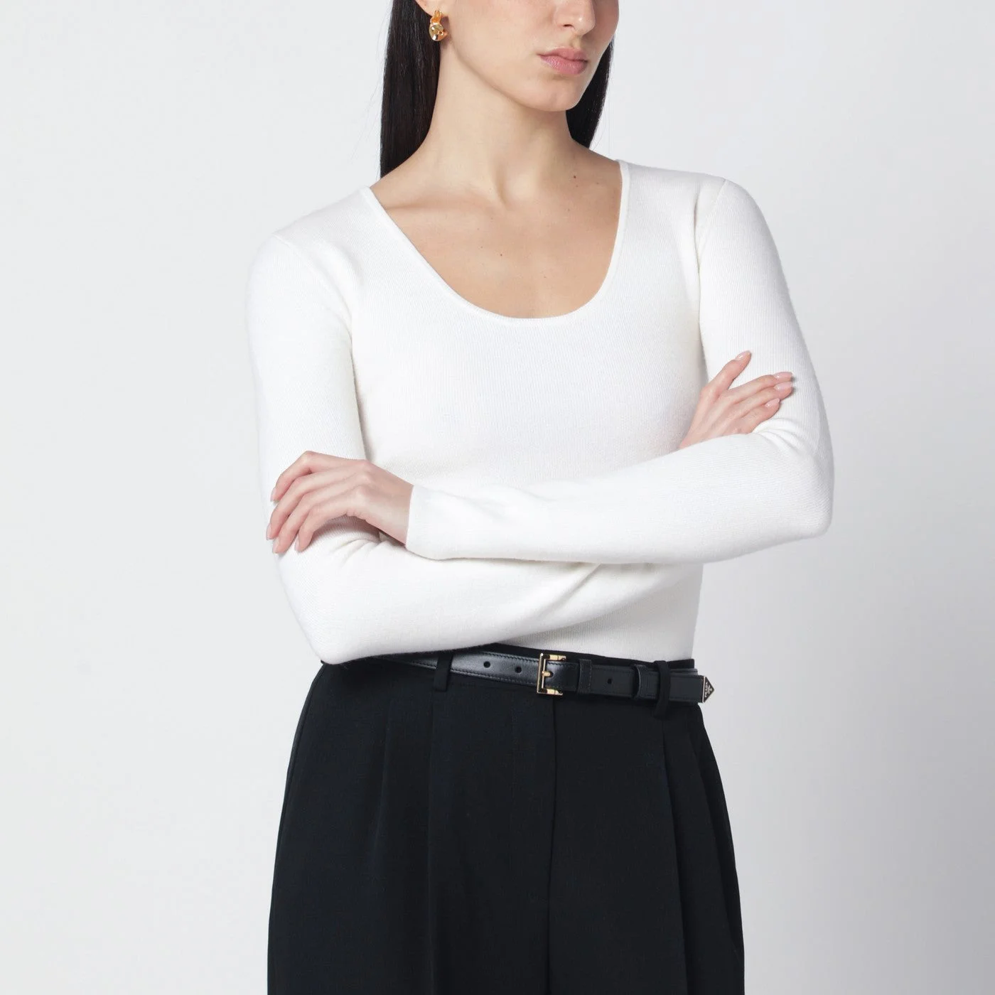 Sweater by TOTEME in ecru wool blend• Wide crew neck• Long sleeves• Ribbed design