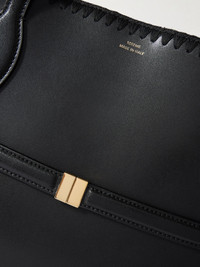 Belted whipstitched leather tote Black