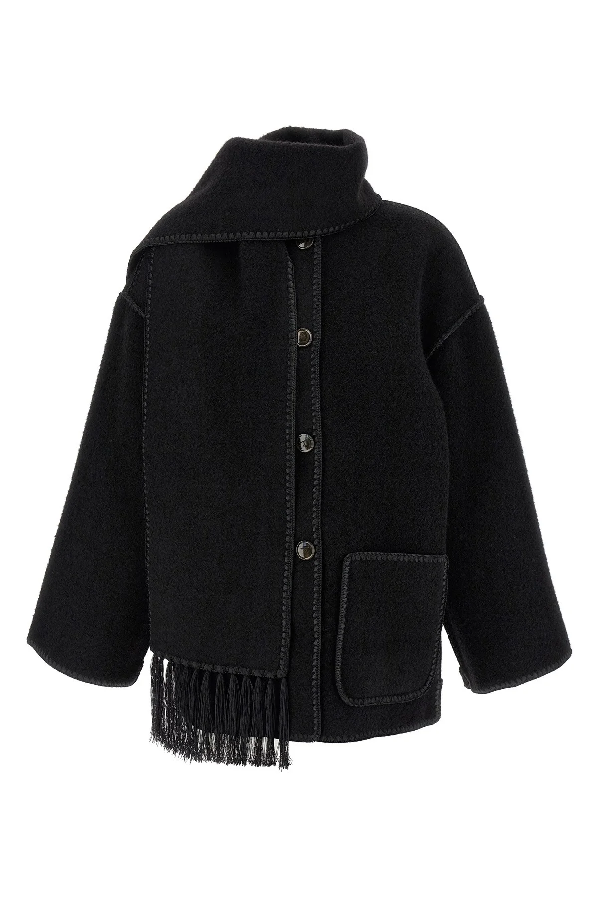 cod. 244WRO918FB0292001 'Embroidered Scarf Jacket Harvest' wool blend coat with button closure, pockets, long and wide sleeves, scarf to tie around the neck. Color: Black Size & Fit: oversize fit - FRENCH size Composition: 88% wool, 12% polyester Made in: China