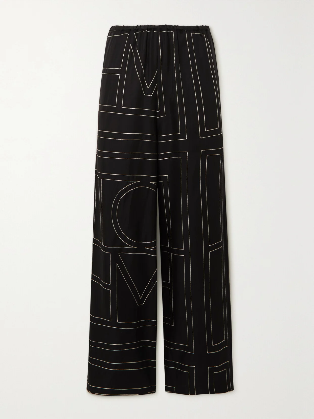 TOTEME's pajama-style pants are cut from soft silk-twill with exaggerated logo embroidery. The definition of effortlessly cool, they look so chic with the matching shirt and mules.