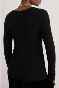 EDITORS'NOTES Inspired by "women's lives and needs," TOTEME's elevated basics are designed to fill the gaps in your existing wardrobe. This 'Enyo' sweater is rib-knitted from soft wool-blend with a curly bouclé finish and close fit. SIZE & FIT - Fits true to size, take your normal size - Designed for a slim fit - Long in the sleeves - Mid-weight knit - Model is 175cm/ 5'9" and is wearing a size Small DETAILS & CARE - Black wool-blend bouclé - Slips on - 55% wool, 45% polyamide