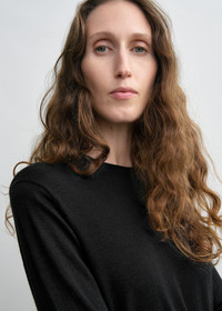 Designer’s note: “With this TOTEME Garderob sweater we set out to create the quintessential crew knit. The result is an easy everyday first layer knitted from fine merino wool and silk with slim arms and a straight silhouette. Style it with monochrome looks, neatly tucked into a skirt or left to drape over trousers.” Details & Fit - Black - 75% wool RWS, 25% silk - Cool hand wash - Style number 252-WRT0469-YA0190 - The model is 181cm/511 tall and wears a size S - True to size, straight fit with slim arms