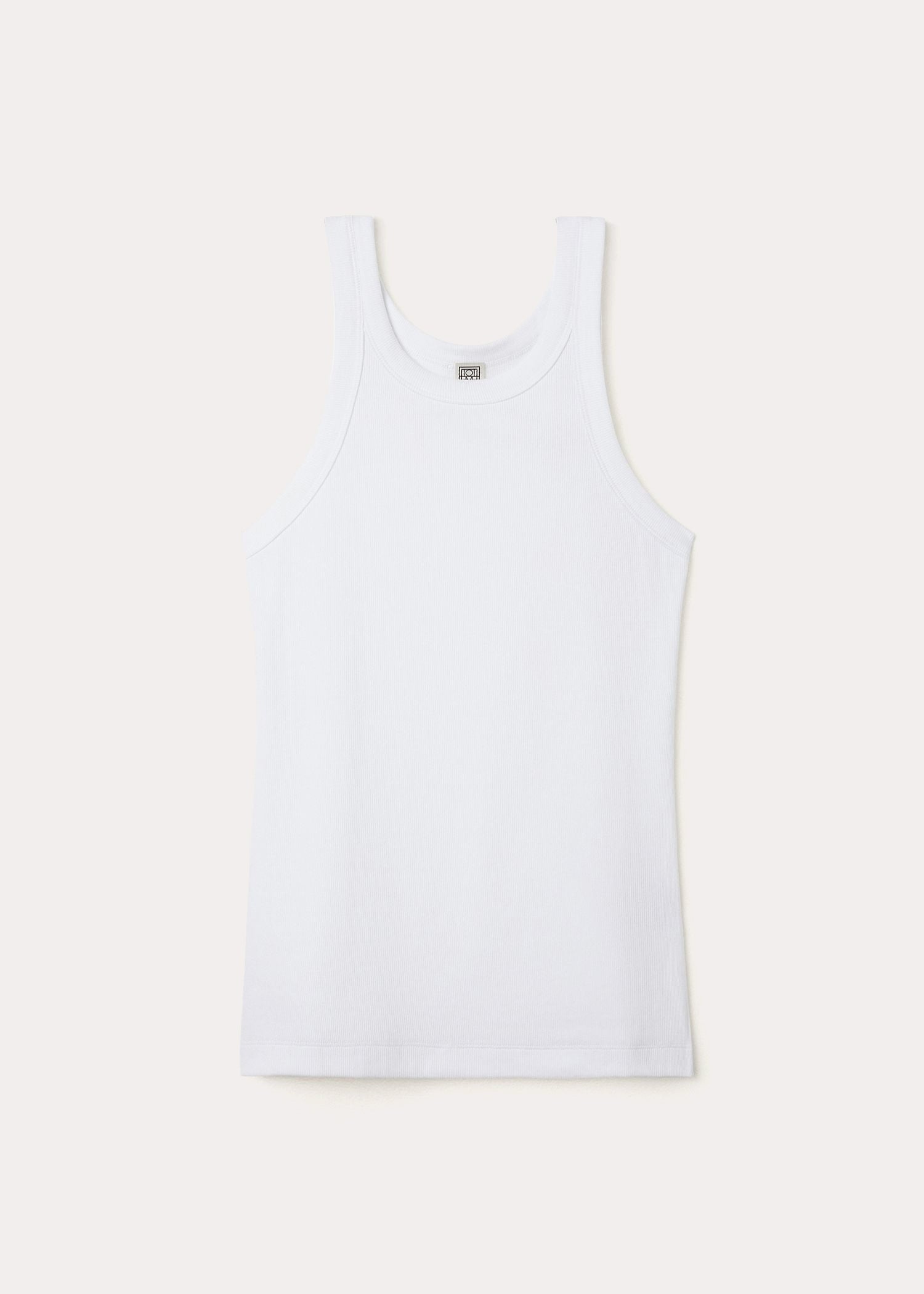 Signature TOTEME tank top made in Portugal from ribbed organic-cotton jersey blended with a hint of elastane for a comfortable, body-hugging fit. It has a high round neck and curved armholes that accentuate the shoulders, then is finished with a straight hem. Tuck it into high-waist trousers to shape the waist. Details & Fit - White - 95% Organic cotton, 5% elastane - 30°C Machine wash - Style number 211-437-772 - The model is 179cm/510 tall and wears a size S