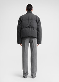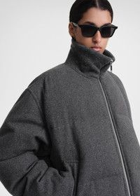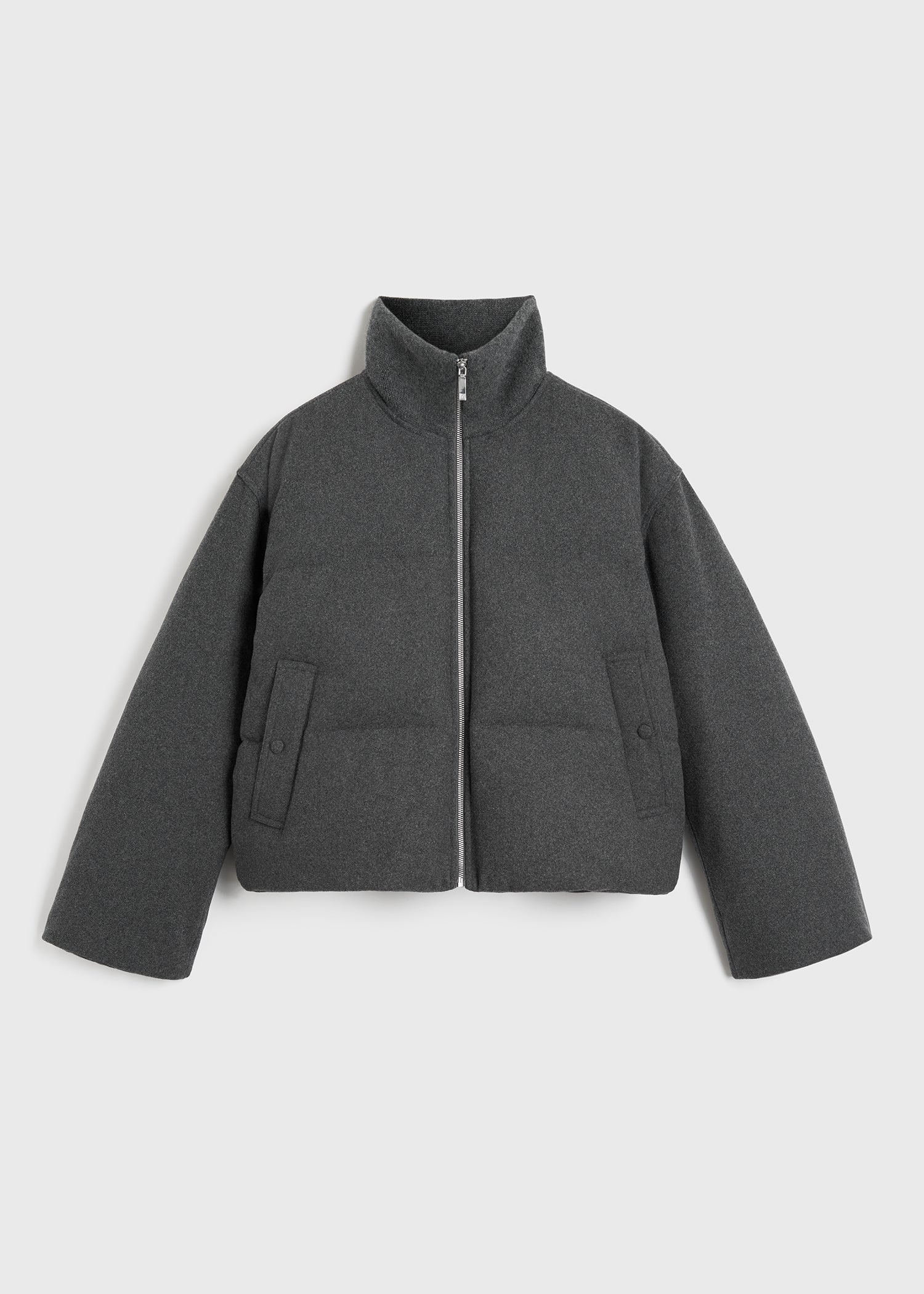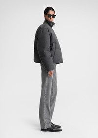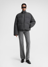 Generously puffed and boudin-quilted TOTEME jacket with a ribbed collar and cuffs for a cozy, warm feeling. It's made from mid-weight wool-blend flannel to a minimalist, cropped, and fully lined silhouette finished with a front zipper and pockets. Layer it over work and off-duty looks. Details & Fit - Grey mélange - Front zipper, press buttons - Ribbed cashmere collar and cuffs - Satin lining - 60% Wool, 30% polyester, 10% other fibers; trim: 70% wool, 30% cashmere; lining; 100% viscose; padding: 100% recycled down - Dry clean - Style number 241-WRO1043-FB0060 - The model is 180cm/511 tall and wears a size 36 - True to size. regular fit