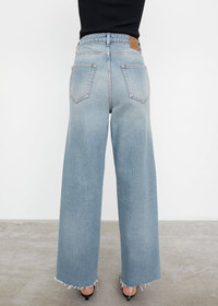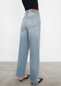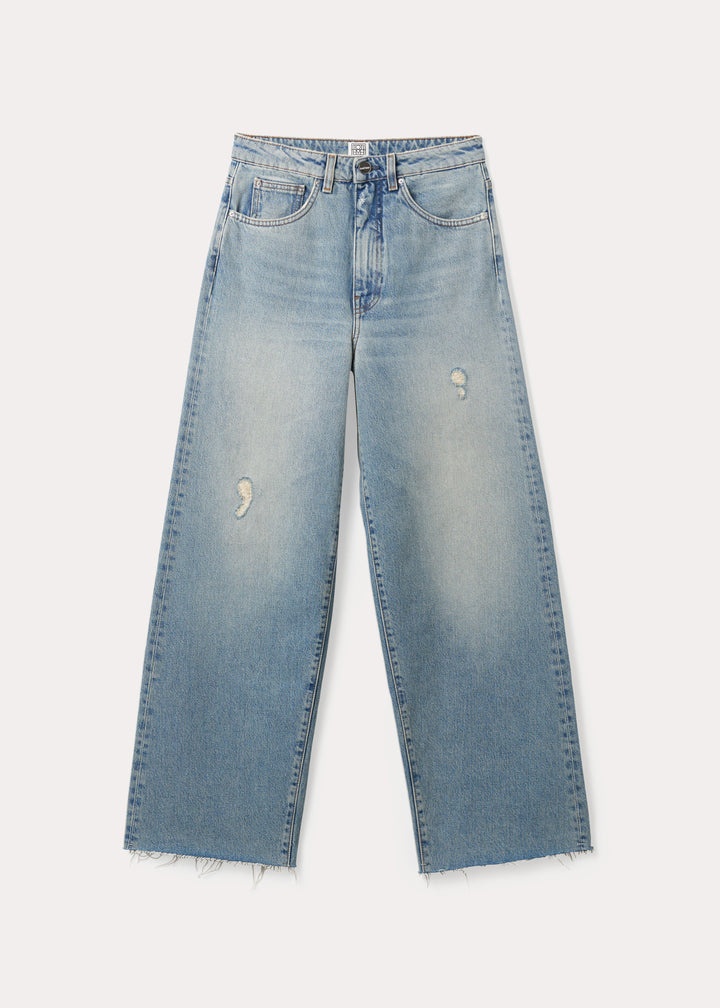The wide-leg silhouette of TOTEME's jeans is inspired by the 1970s. Made in Italy from rigid organic cotton that will soften with each wear, they have a high waist featuring belt loops, five pockets and a zipper fly and then flare below the hips. Create a leg-lengthening illusion by styling them with a tucked-in shirt. Details and fit - Light blue - Zipper fly - Belt loops, five pockets - Monogram leather patch - 100% Organic cotton - 30°C Machine wash - Style number 213-230-741 - True to size, relaxed on the hips