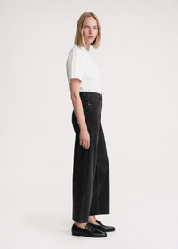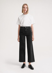The high waist and wide legs of TOTEME's jeans are a nod to the 1970s. Made in Italy from organic-cotton denim blended with elastane for comfort and softness, they feature belt loops and five pockets and are fitted on the hips before flaring toward the slightly cropped cuffs. Create a leg-lengthening illusion by styling them with a tucked-in top. Details & Fit - Grey - High waist - Zipper fly - Belt loops, five pockets - 96% Organic cotton, 3% elastomultiester, 1% elastane - 30°C Machine wash - Style number 222-230-743 - The model is 177cm/59 tall and wears a size 27/34 - Slim waist and hips and wide legs. May stretch after wear, consider taking a size down
