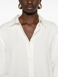 floral-jacquard cotton shirt Highlights - White - Cotton - Twill weave - Floral patterned jacquard - Box-pleat detail - Classic collar - Front button fastening - Drop shoulder - Long sleeves - Buttoned cuffs - Curved hem Imported Composition Cotton 100%, Viscose 100% SIZE & FIT Model measurements Height 5 ft 10 in(1.77 m) Bust/Chest 32.28 in(82 cm) Hips 35.03 in(89 cm) Waist 25.19 in(64 cm) FittingInformation Designed for an oversized fit, offering additional room throughout Made from a midweight fabric Washing instructions Dry Clean Only