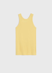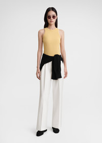 Fluid tank top inspired by TOTEME's Curved seam tank. It's made from viscose jersey that's topstitched along the neck and armholes and fastens with a concealed back zipper. Team it with the matching skirt for a daytime event. Details & Fit - Cornsilk - Concealed back zipper - 96% viscose, 4% elastane - Cool hand wash - Style number 242-WRT1727-FB0162 - The model is 178cm/510 tall and wears a size S - Slim fit, true to size