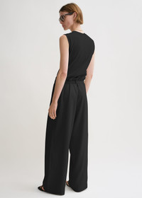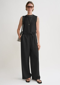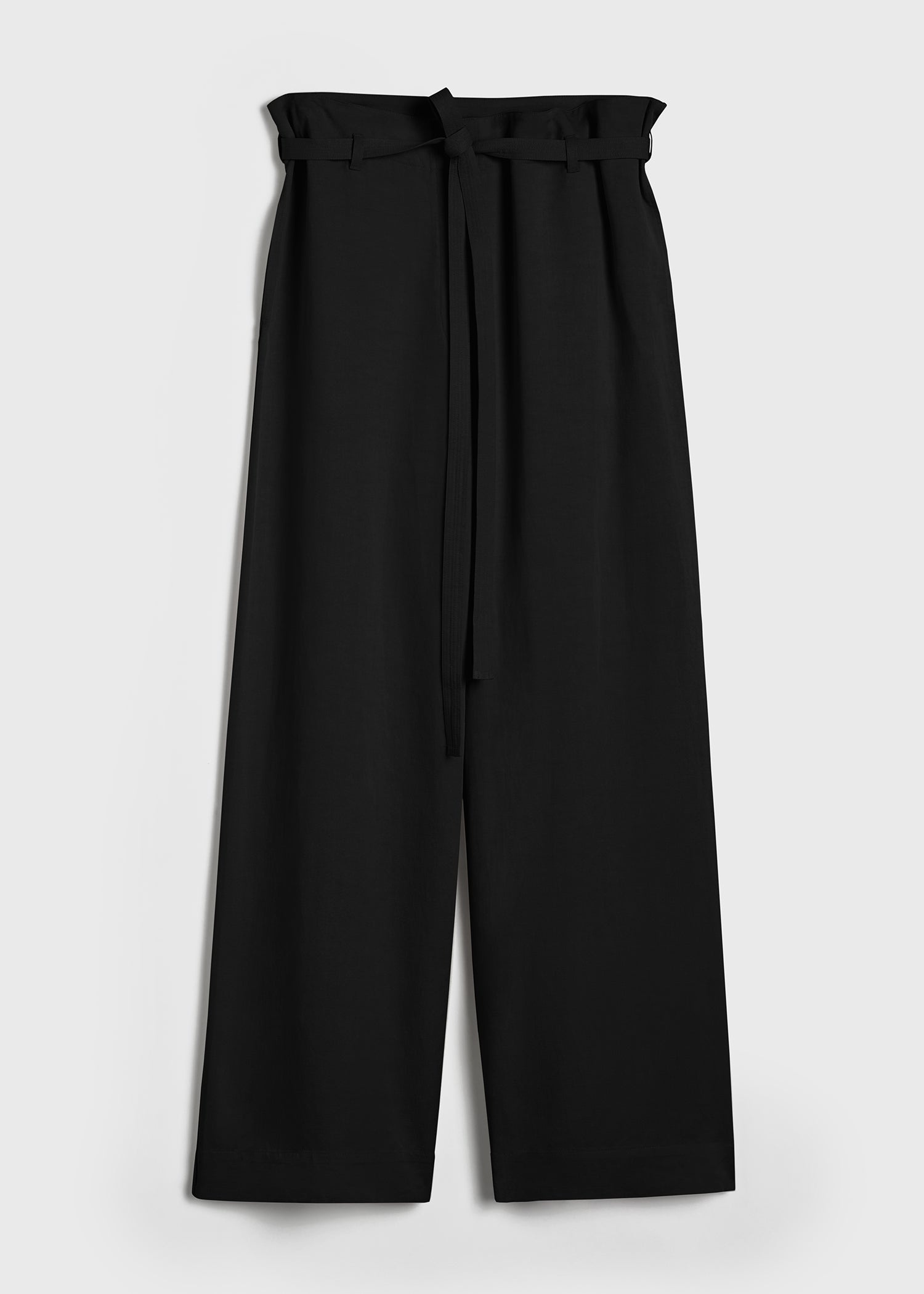 High-waist TOTEME trousers with all-around ties that create a subtle paperbag bag effect when fastened. Made from ECOVERO™ rayon blended with linen, it has long, wide legs that move effortlessly as you walk and are complete with convenient slip pockets. Wear them throughout the summer with T-shirts and blouses. Details & Fit - Black - Belt loops, attached waist ties - Side pockets - 85% viscose, 15% linen - Cool hand wash - Style number 243-WRB0201-FB0193 - The model is 180cm/511 tall and wears a size 36 - True to size, wide legs
