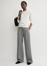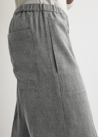 Laid-back trousers reworked for the winter in lightweight, fluid canvas with a touch of wool for warmth. They have a high waist with side and back pockets and flared, wide legs for a sculptural effect. Wear them as an effortless day look with a simple knit. Details & Fit - Mid grey - Elasticated waistband - Side and back pockets - 90% viscose, 10% wool - Dry clean - Style number 254-WRB0370-FB0016 - The model is 180cm/5'11 tall and wears a size 36