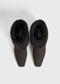 Winter boots exuding an effortless everyday appeal, elevated by the elongated square-toe silhouette. They are made from soft lamb suede entirely lined with furry shearling for warmth and are set on an anti-slip rubber sole. Fold them down to keep the shearling in focus. Details & Fit - Pepper - Shearling lining - Rubber sole - 100% lamb leather; lining: 100% sheep leather; sole: 100% cow leather - Care instructions and dust bag included - Style number 254-WAS0255-LE0116