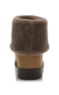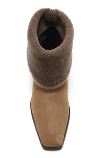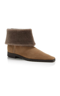 With its signature clean lines and minimalist style, Stockholm-based Toteme is the quintessential Scandi-cool. Elin Kling designs each collection as a modern uniform, looking to vintage pieces for inspiration and giving its cult following a dress code for every day. Crafted from soft suede with a plush shearling lining, these ankle boots feature a slim silhouette with a squared toe and foldover cuff. A functional and cozy option for cold-weather dressing. PRODUCT DETAILS - Slip on - Composition: Shearling LWG - Made in Italy