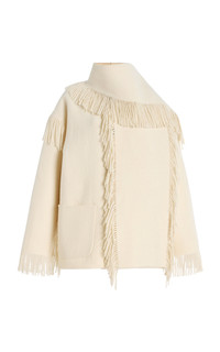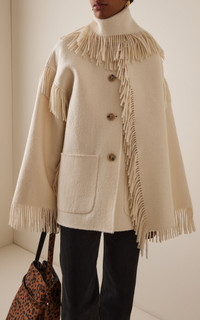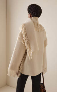 With its signature clean lines and minimalist style, Stockholm-based Toteme is the quintessential Scandi-cool. Elin Kling designs each collection as a modern uniform, looking to vintage pieces for inspiration and giving its cult following a dress code for every day. An evolution of the label's wildly popular scarf jacket, this fringed iteration has an oversized fit made from heavyweight felt using responsibly sourced wool. PRODUCT DETAILS - Fall '25 - Button fastening - Composition: 68% RWS wool, 20% recycled wool, 12% recycled polyester - Designer color: Winter White - Dry clean - Imported