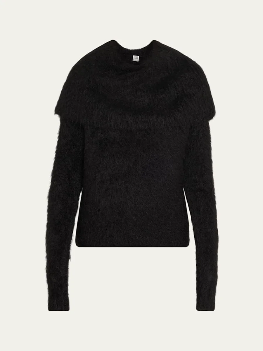 Toteme sweater is crafted from a fuzzy alpacablend knit accented with a foldover funnel neckline Funnel neckline Long sleeves Relaxed fit Hip length Ribbed cuffs and hem Pullover style Alpaca/nylon/polyamide/elastane Hand wash Imported