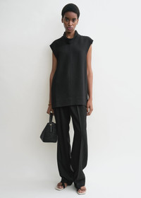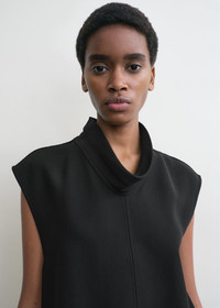 Architectural TOTEME top outlined with a structured high neck and a longline silhouette with distinctive twisted side seams. Made from heavyweight viscose twill with a dry hand feel, it fastens with a simple concealed back zipper. Layer it over trousers for a meeting. Details & Fit - Black - Concealed back zipper - 71% viscose, 29% cotton - Dry clean - Style number 252-WRT0452-FB0389 - The model is 178cm/510 tall and wears a size 36 - True to size