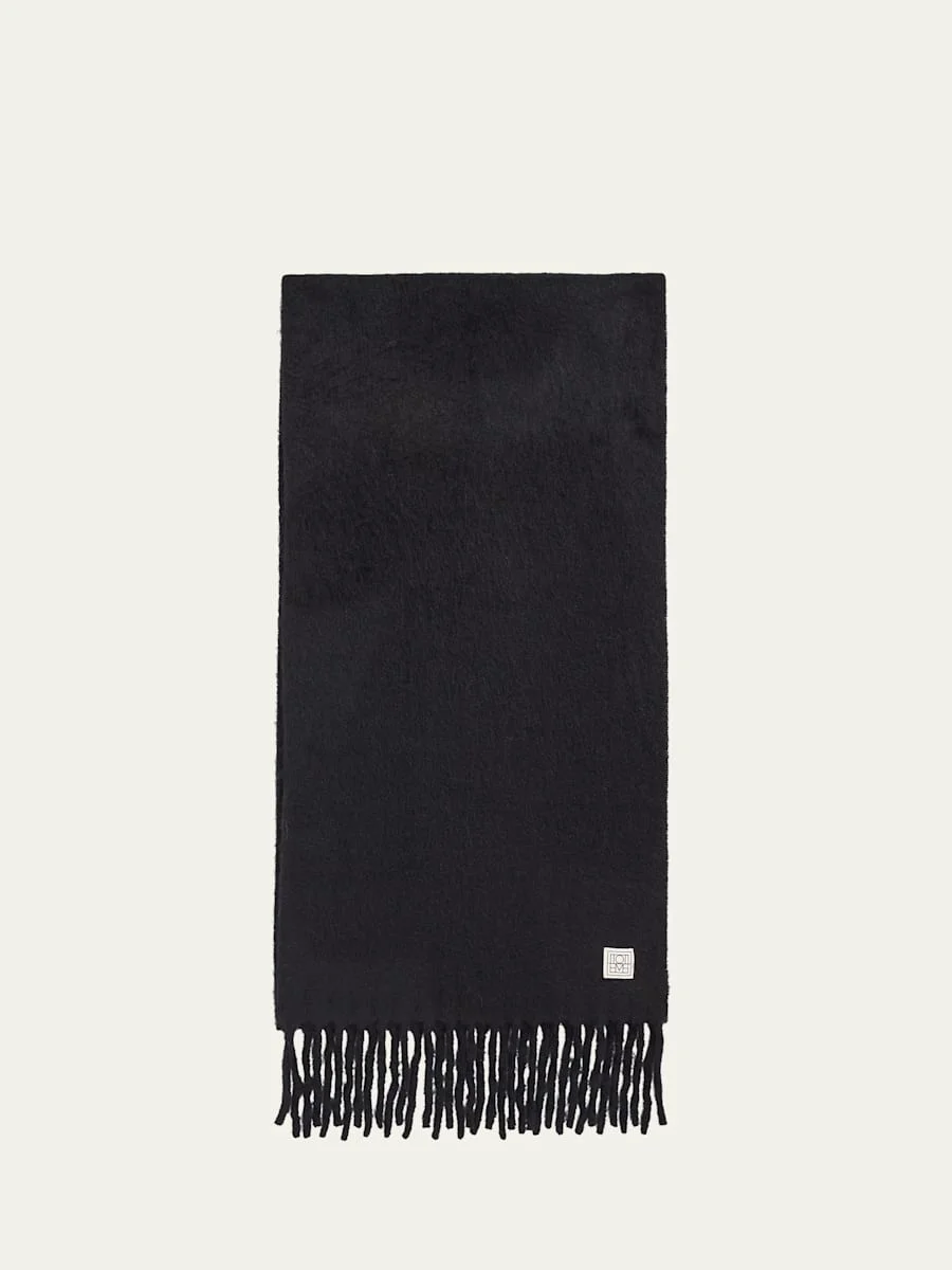 Toteme scarf crafted from a fuzzy alpaca blend with a soft, brushed finish and long tassels. Approx. 86.6"L x 19"W May be styled multiple ways Alpaca/wool/polyester Hand wash Made in Italy