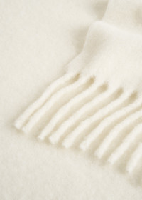 Warm winter scarf made from a fuzzy alpaca blend with a soft, brushed finish and long tassels for texture. Use it to bring textural contrast to a neat coat. Details & Fit - Off-white - 60% alpaca, 25% wool, 15% polyester - Cool hand wash - Style number 261-WSC0148-FB0629 - Length 220cm/86.6" - Width 48cm/19''