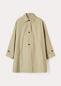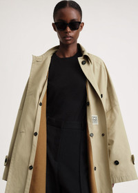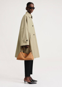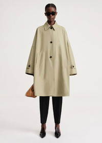 TOTEME's modern take on the classic car coat, woven from a mid-weight, water-repellent organic-cotton blend that feels crisp to the touch. It has an extra-oversized A-line silhouette featuring low shoulders, buttoned cuff tabs, and welt pockets, and comes with a detachable camel-brown lining made from a soft cotton blend which can also be worn on its own. Wear it throughout the year with trans-seasonal looks. Details and fit - Cashew - Button front - Welt pockets - Detachable brown lining - 59% Organic cotton, 41% polyamide; lining: 50% cotton, 50% polyester - Dry clean - Style number 231-1029-221 - The model is 174cm/5’8” tall and wears a size 34 - Designed for an oversized fit, go down two sizes for a neater look