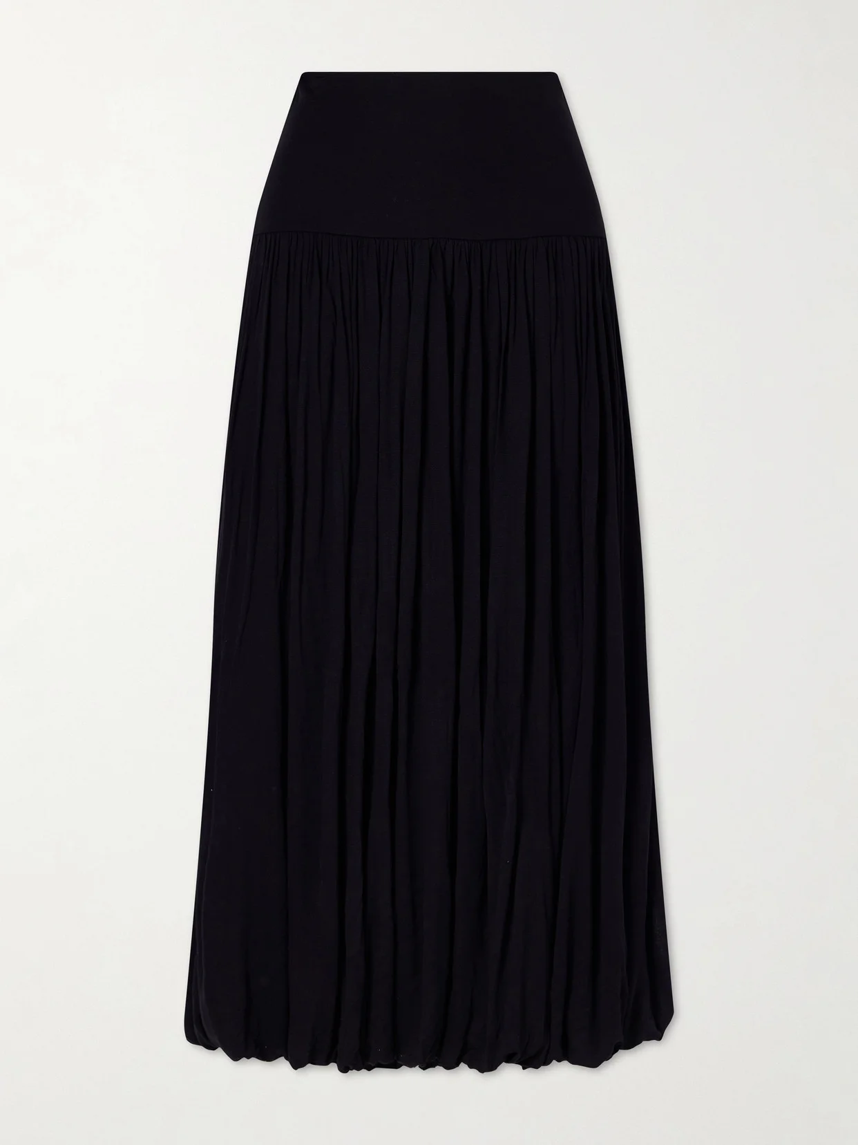 TOTEME's skirt nods to the playful shape of bubble skirts while maintaining the brand's refined aesthetic. Made from stretch jersey, it has a dropped waist and soft gathering that falls to midi length. Style yours with a tank top and mules.