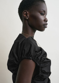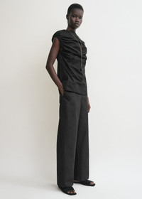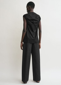 TOTEME top imagined for high summer days in the city. It is made from light and fresh organic-cotton poplin gathered along the armholes to create sculptural volume. Partner it with the coordinating skirt and sandals. Details & Fit - Black - Boat neck - Gathered, elasticated armholes - Slanting side seams - 100% cotton organic - 30°C delicate machine wash - Style number 253-WRT0517-FB0226 - The model is 176cm/59 tall and wears a size 36 - True to size, regular fit