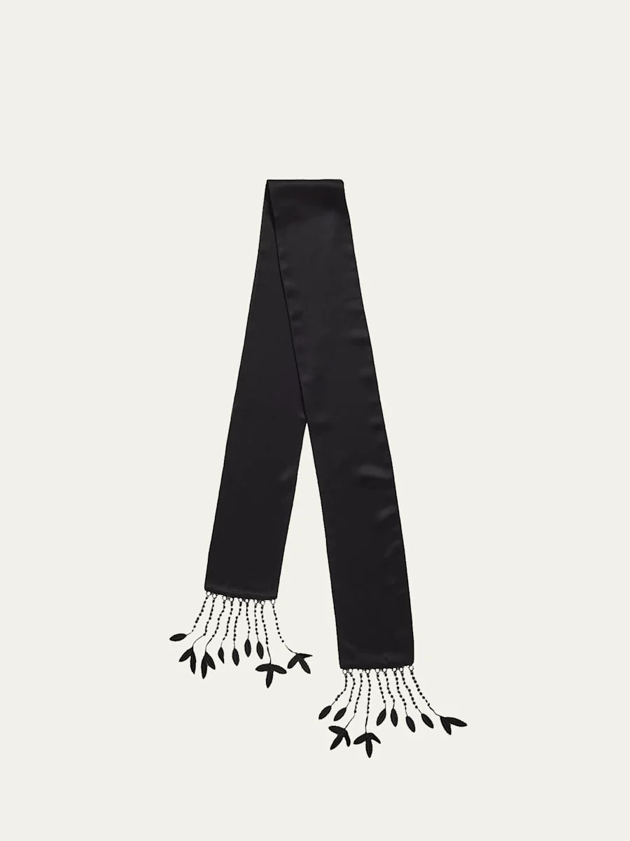 Crafted from fluid crepe, this Toteme tuxedo scarf showcases guipure lace fringing on both ends. Approx. 59"L x 5"W May be styled multiple ways Viscose Dry clean Imported