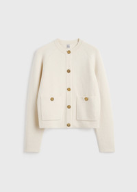 The focal element of this elegant cardigan is the hammered shank buttons decorating the placket and pockets. It is knitted from cashmere to a spongy, double-sided construction that feels warm and soft to the touch. Pair it with jeans for the weekend. Details & Fit - Milk - Buttoned placket - Patch pockets - 53% cashmere, 44% wool, 3% elastane - Cool hand wash - Style number 254-WRT4357-YA0126 - The model is 180cm/5'11 tall and wears a size S