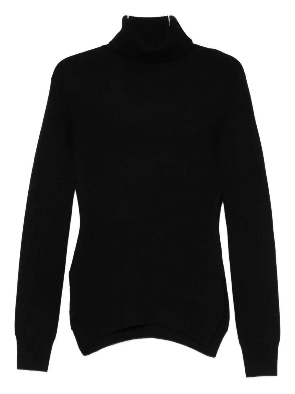 high-neck sweater Highlights Imported Composition Wool 98%, Polyamide 2% SIZE & FIT Model measurements Height 5 ft 11 in(1.8 m) Bust/Chest 31.49 in(80 cm) Hips 36.61 in(93 cm) Waist 24.4 in(62 cm)