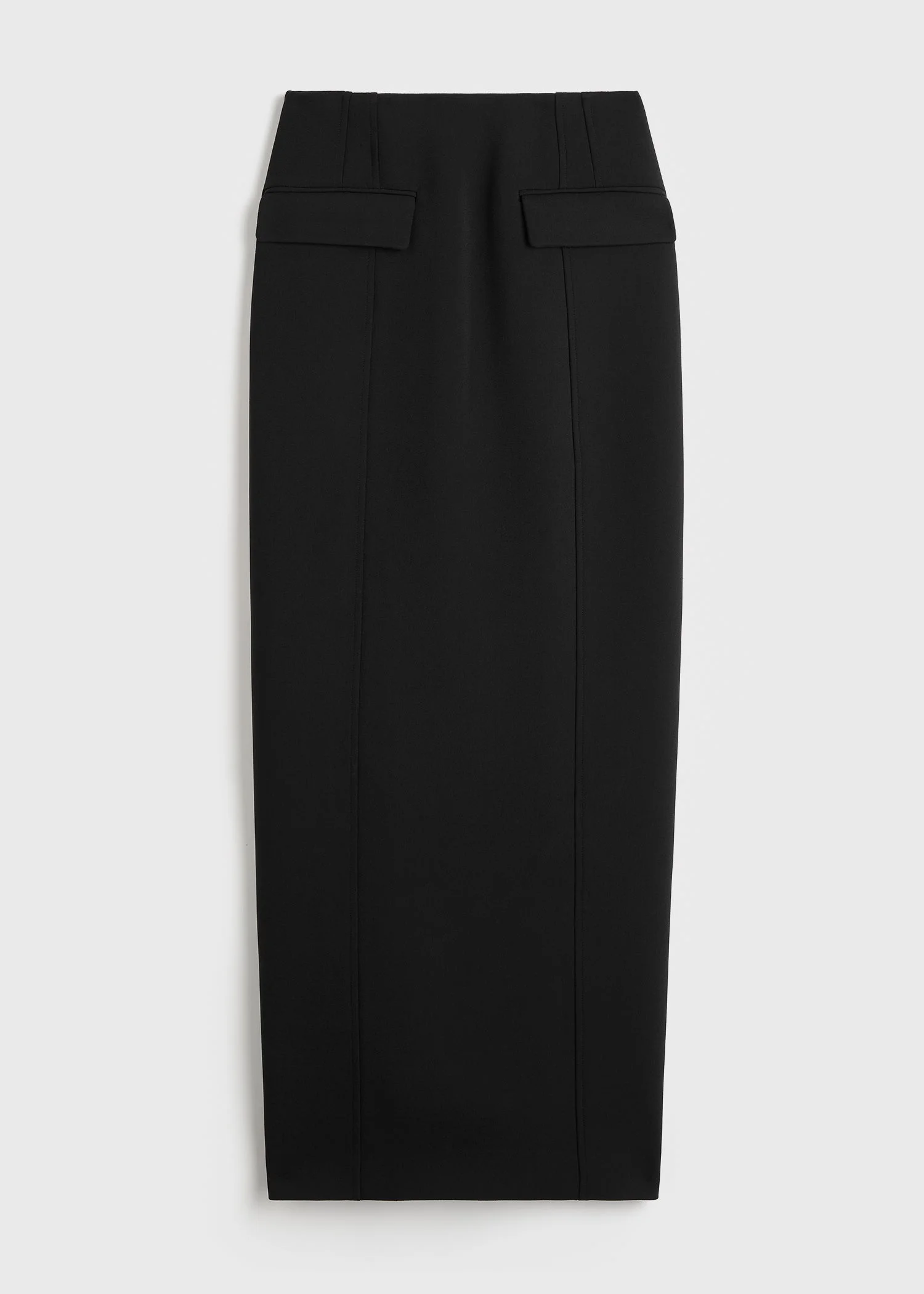 Designer’s note: "An ankle-length skirt to style with a tee during the day and with a blazer for dinner. It's made from fully lined, mid-weight bonded crepe to sit at the waist into a straight silhouette, and accented with functional flap pockets." Details - Black - Flap pockets - Concealed back zipper - Back slit - 100% recycled polyester - Dry clean - Style number 254-WRB0263-FB0307 Fit information - The model is 180cm/5'11” tall and wears a size 36 - Straight fit Origin & Certificates - Country of origin: China - Main supplier: Wellsilk