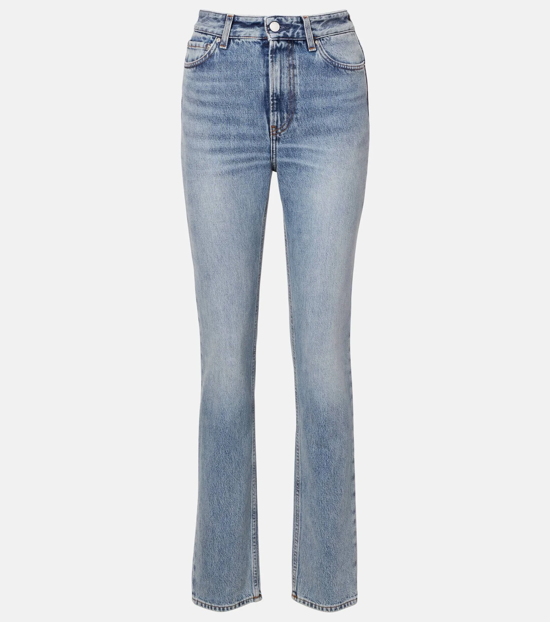 Define your dress code with styles from Toteme, a Stockholm-based brand dedicated to creating a modern uniform. These jeans feature a high-rise waistline and are cut to a slim-leg silhouette. Product Details - Material: 100% cotton (organic) - Care instructions: machine wash at 30 degrees - Made in China - Designer color name: True Vintage - Item color: blue - Closure: zipper fly, button fastening - Pockets: five pockets - Belt loops - Item number: P01102016 Size & Fit - Fits small to size - we recommend trying one size larger - Non-stretchy fabric - Slim-leg - High-rise - The model seen in the picture is 178cm-5'10" and wearing a size 27