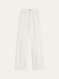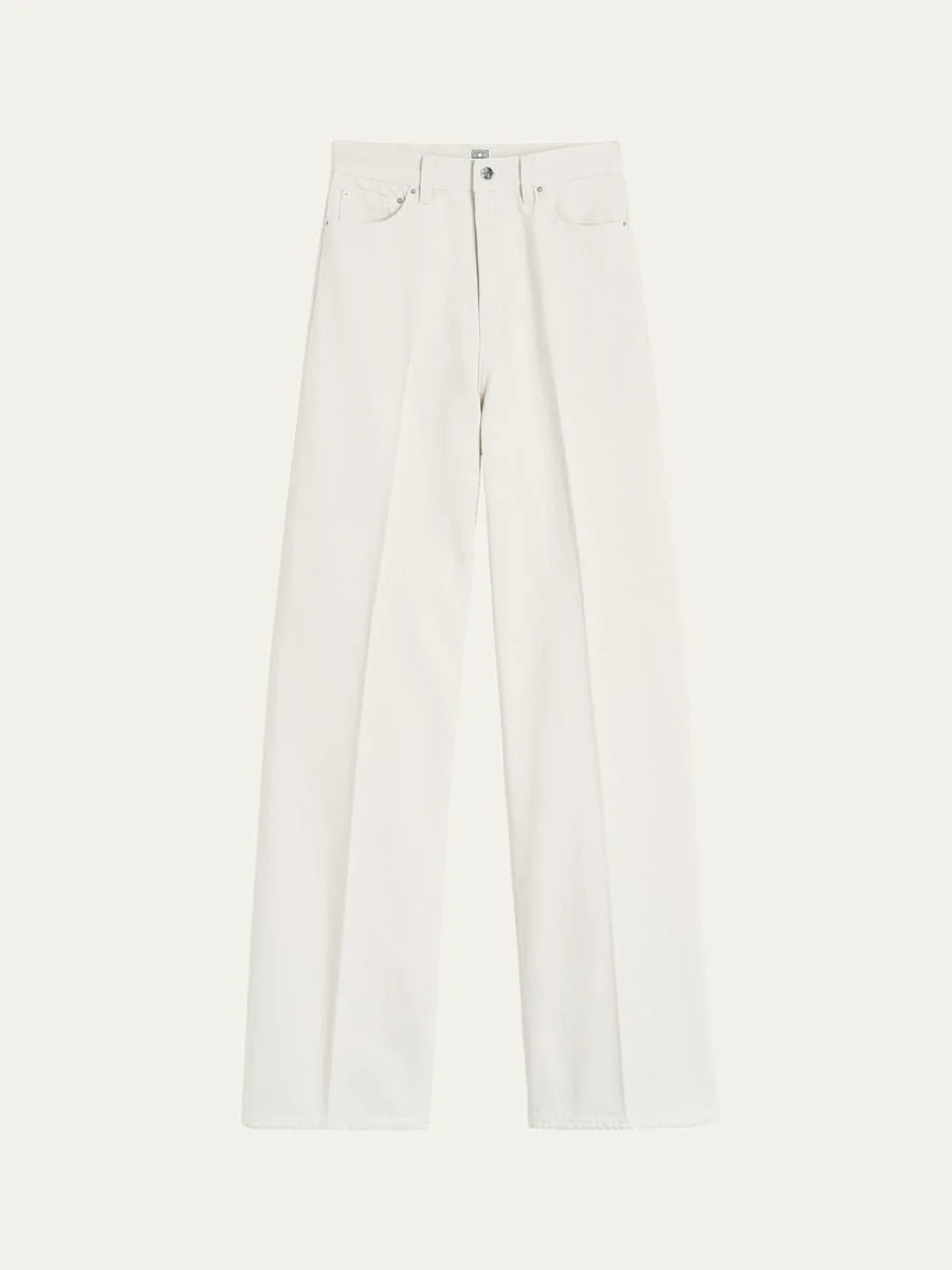 Toteme midweight organiccotton denim jeans featuring presscreased for definition, and silver hardware High rise Fivepocket style Relaxed straight legs Full length Button/zip fly; belt loops Organic cotton Imported