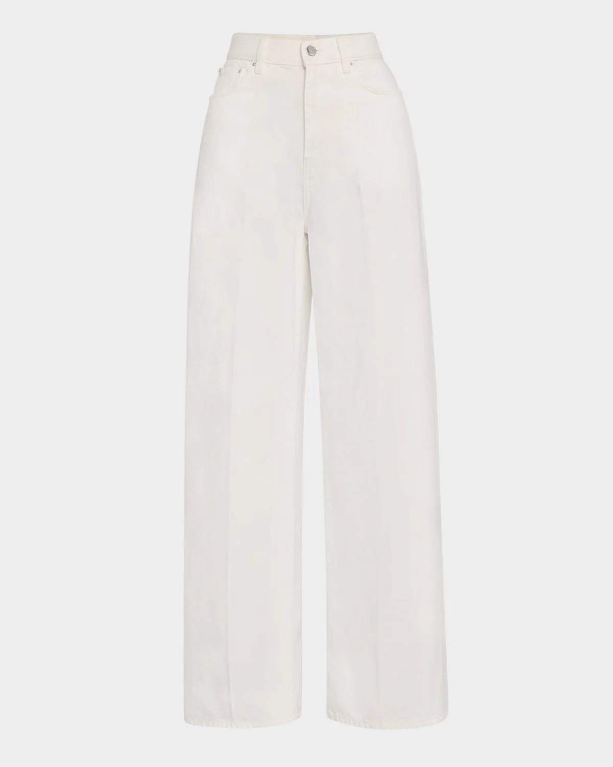 Toteme midweight organiccotton denim jeans featuring presscreased for definition, and silver hardware High rise Fivepocket style Relaxed straight legs Full length Button/zip fly; belt loops Organic cotton Imported