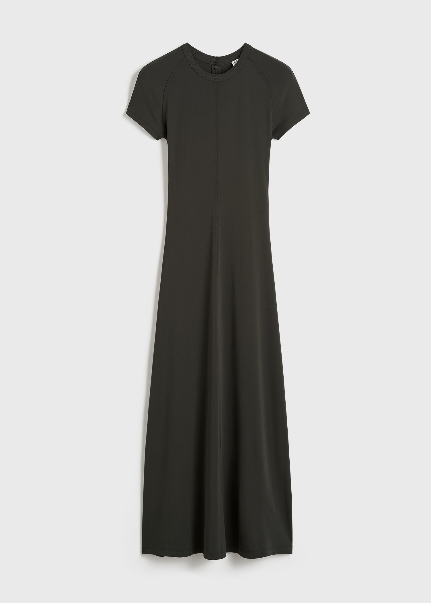 Long TOTEME dress with short raglan sleeves and side seams swooping forward for a sporty feel. It is knitted from fluid mid-weight jersey with a dry hand and fastens with a concealed back zipper. Wear it to grab brunch on the weekend. Details & Fit - Pepper - Raglan sleeves - Concealed back zipper - 96% viscose, 4% elastane - Cool hand wash - Style number 242-WRD1696-FB0162 - The model is 178cm/510 tall and wears a size S - Regular fit, true to size