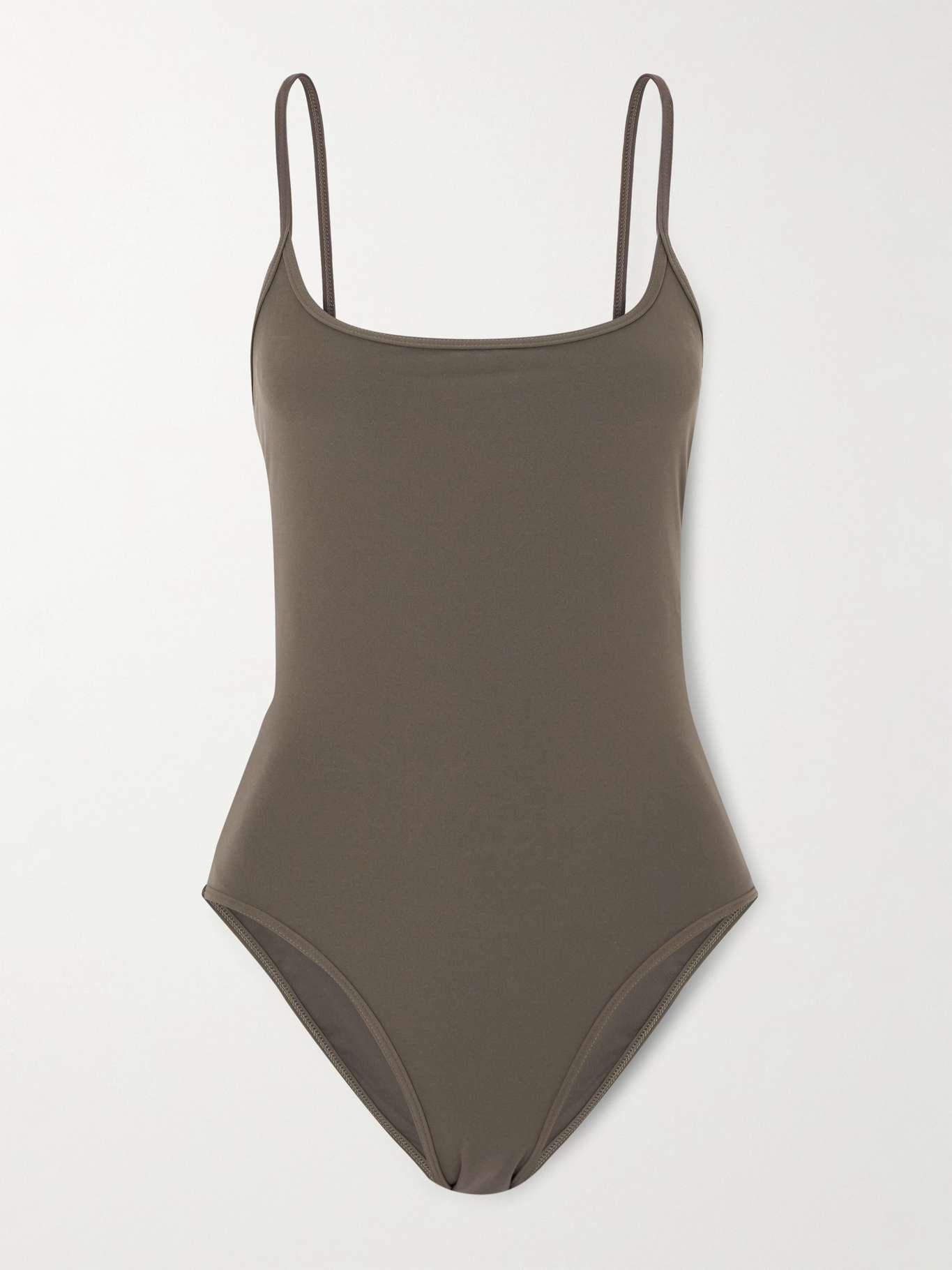 EDITORS'NOTES TOTEME's swimwear is defined by clean lines and comfortable, supportive fabrics. This swimsuit is made from stretch fabric blended with 43% recycled fibers and has a minimal design complete with slim straps and a scooped neckline. Wear yours with a pareo in the day and palazzo pants to dinner. SIZE & FIT - Fully adjustable shoulder straps - Medium brief coverage - S/M/L sizing DETAILS & CARE - Black stretch-polyamide - Pulls on - 43% recycled polyamide, 29% polyamide, 28% elastane - Machine wash - Lotion, sunscreen, oil and chlorine can cause discoloration of this item; this is not a manufacturing defect. Please follow care instructions to keep your swimwear in the best condition