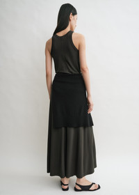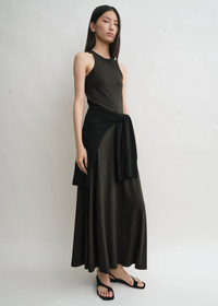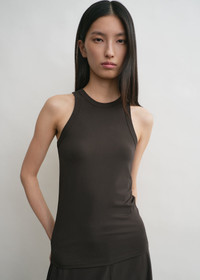 Fluid tank top inspired by TOTEME's Curved seam tank. It is made from viscose jersey topstitched along the neck and armholes and fastened with a concealed back zipper. Team it with the matching skirt for a daytime event. Details & Fit - Pepper - Concealed back zipper - 96% viscose, 4% elastane - Cool hand wash - Style number 242-WRT1727-FB0162 - The model is 180cm/5'11 tall and wears a size S - True to size