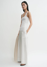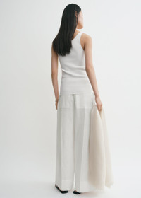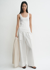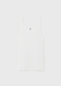 Designer’s note: “This TOTEME tank has been with us for many years and is now part of the Garderob curation. What we love about it is the strong yet alluring scoop neckline paired with a slim silhouette knitted from compact jersey – a fabric we return to time and time again because of how it holds the body, offering a comforting sense of security.” Details & Fit - White - 53% viscose, 45% polyamide recycled, 2% elastane - Cool hand wash - Style number 252-WRT0504-YA0187 - The model is 181cm/511 tall and wears a size S - True to size, slim fit